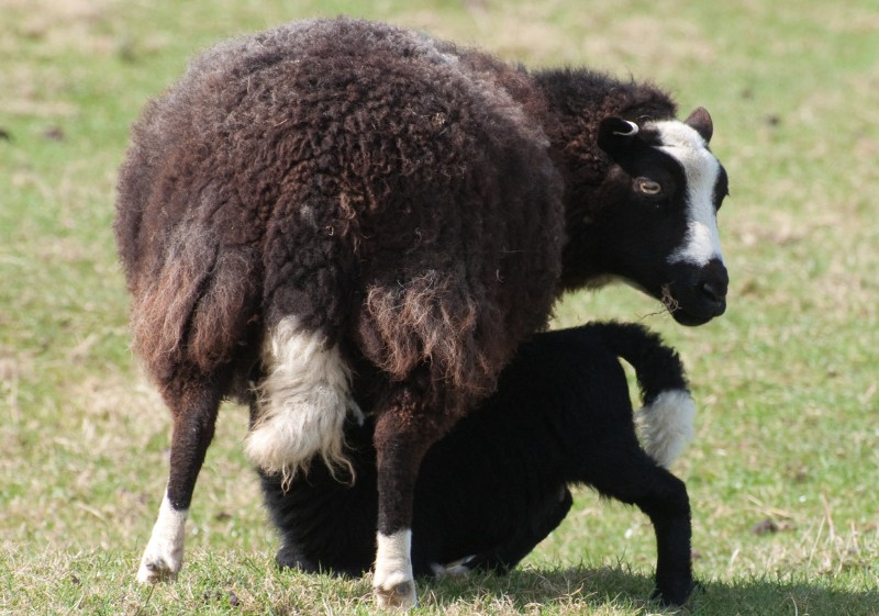 Welsh Mountain ewe sheep are small, hardy sheep from the higher parts of the Welsh mountains. The males have horns, and the females are polled; they have no wool on the face or legs, and they have long tails. There are a number of varieties, bred for sheep farming in Wales